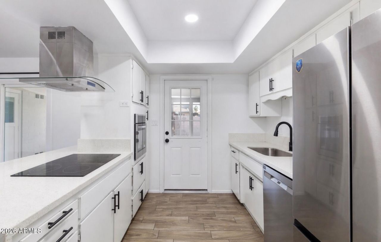 Welcome to Fairmont Dr in Tempe, a rare 5 bedroom home offering tile flooring through main areas and LVP flooring in all bedrooms with no carpet, ideal for clean, low maintenance living. The updated kitchen features upgraded quartz counters, new stainless steel appliances, and great flow for everyday use and entertaining. Indoor laundry adds convenience, and the flexible layout offers space for guests, work, or growing households. Plenty of parking for up to 6 cars adds everyday functionality. Homes with five bedrooms and solid surface flooring are hard to find. Located within 5 miles of Tempe Town Lake, Arizona State University, Tempe Marketplace, Desert Botanical Garden, and Phoenix Zoo, this location also offers strong potential as an income investment property near the ASU campus.