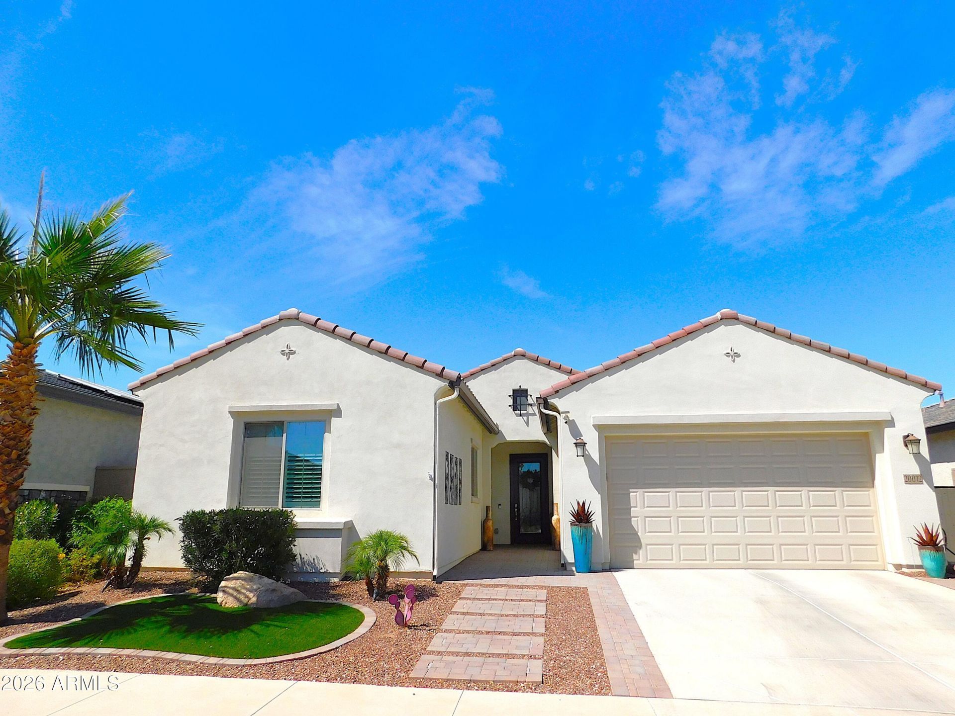 Welcome to our MODEL-like home with mountain views! Built in 22, this 3-bed (w/ option for 4th) & 2.5 bath home features an open plan, 10 ceilings, & incredible outdoor space! Inside you find wood-like tile throughout with two-tone paint & tasteful accent walls. The kitchen features new stainless appliances (w/ gas available), white cabinets (w/ pullouts), quartz counters, & a butlers nook + pantry. Your primary suite has its own patio door & a STUNNING bathroom w/ a remodeled walk-in shower, dual vanities, & walk-in closet. Well-sized (& BEAUTIFUL) guest rooms w/ walk-ins & updated bathrooms here, too! The landscaping is LOW MAINTENANCE with pavers, turf, auto drip systems, and plants all in perfect places! The backs EXTENDED PATIO upgrade makes your outdoor area a PARADISE, too! The home also features a 3-car tandem garage, newly epoxied garage & patio floors, & garage storage cabinets, too! With an updated front door, upgraded landscape lighting, shutters, RO system, soft water system, cabinet pull outs & more, there are simply too many upgrades to list!