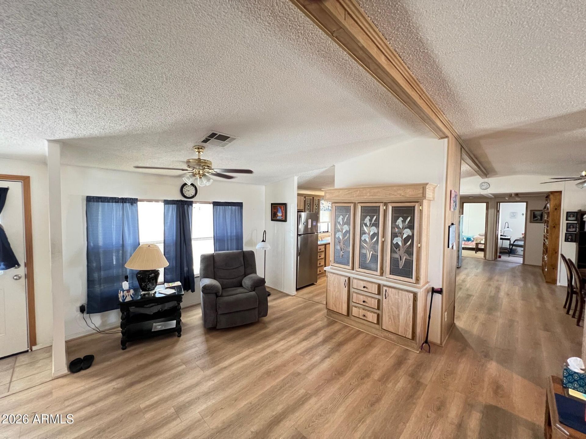Very hard to find 3 bedroom, 2 bath beauty (most homes are 2 bedrooms). Separate family room and living room. Beautiful open kitchen with an abundance of cabinets. Kitchen island with seating. Vaulted ceilings. Split bedroom floor plan. Really nice spacious air conditioned workshop. Large laundry room. Heat pump about six years old. This home has so much storage!! Its a beauty and located very close to the club house and all the awesome amenities that the Apache Wells 55+ community has to offer. This is a must see home!!