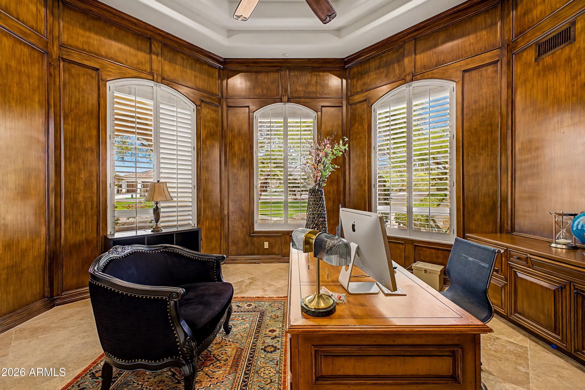 Situated in Paradise Valley, this exceptional estate offers 9,827 square feet of luxurious living with 5 bedrooms and 5.5 bathrooms, and a rare 6-car garage, all set on an expansive 61,386 square foot lot. Ideally located near the Biltmore Golf Course, the property showcases breathtaking panoramic views of Camelback Mountain, including the iconic Praying Monk, as well as Piestewa Peak and sparkling downtown city lights--delivering a truly elevated Arizona lifestyle.Designed for both grand entertaining and everyday comfort, the residence features expansive living spaces and a private in-home theater for an immersive experience. The outdoor setting is equally impressive, complete with a resort-style pool, built-in barbecue, outdoor fireplace, and a full tennis court with an integrated basketball court--creating a private recreational retreat ideal for both relaxation and activity.With no HOA and exceptional privacy, this property presents a rare opportunity to own a premier Paradise Valley estate with close proximity to some of the Valleys most desirable amenities and iconic views.