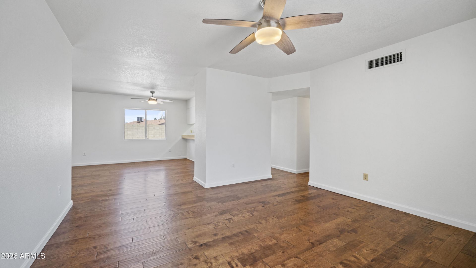 Freshly painted 3 bed, 2 bath single-story home in the desirable Suntrails 2 neighborhood with NO HOA! The bright kitchen features freshly painted white cabinets, a large island, and lots of natural light. The open floor plan flows beautifully into the spacious family and dining areas with real wood flooring throughout. Youll also enjoy the generous bedrooms, ceiling fans, convenient laundry room, epoxy garage, and a great big backyard ready for your touches. Quiet street location with easy access to the 60 and 202. This home is priced to sell and is a fantastic opportunity in Mesa. Dont miss out and come see it today!