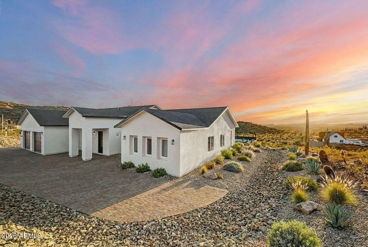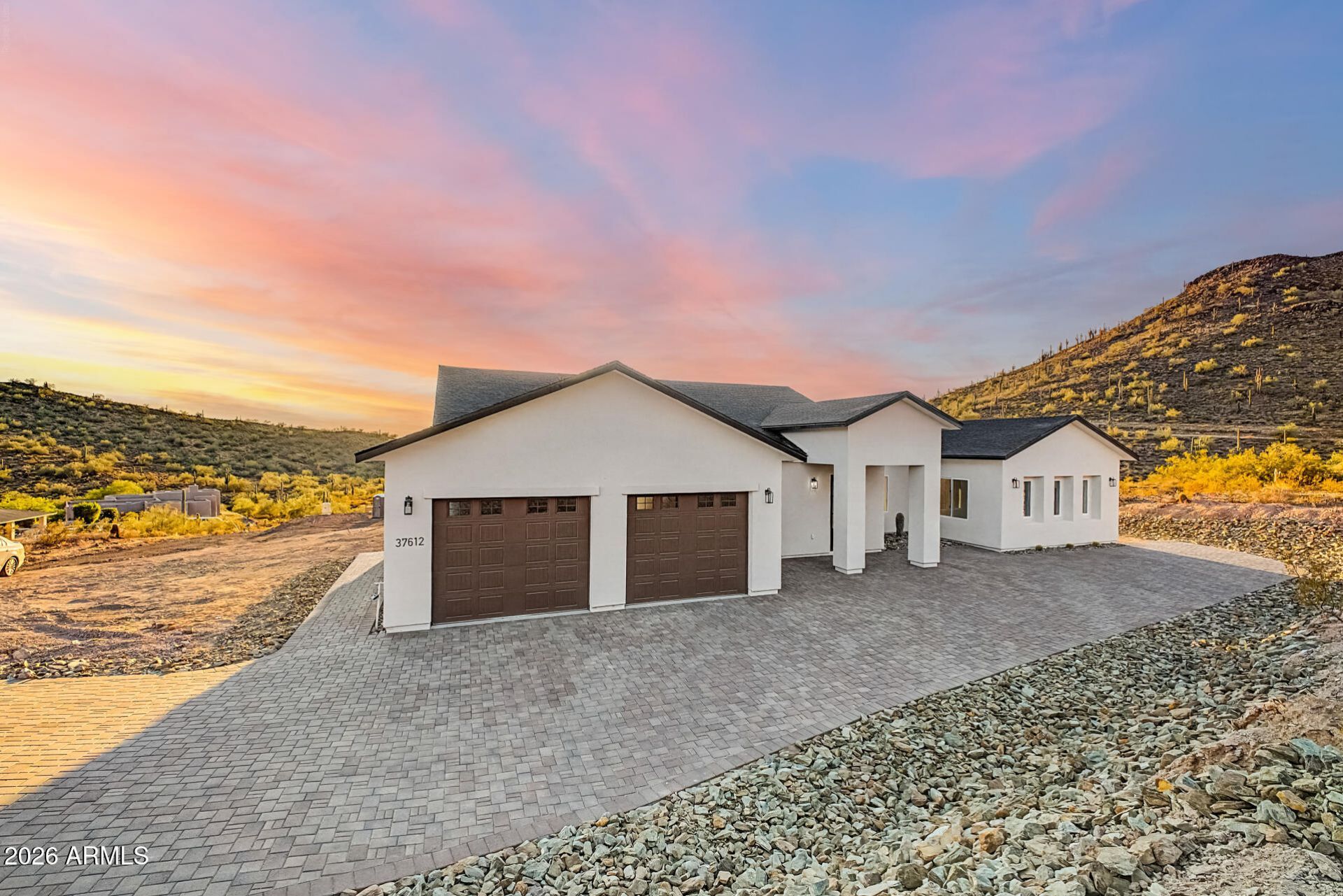 Newly constructed home on a 1.3-acre lot with breathtaking mountain views in every direction. The expansive backyard offers endless potential -- room for a resort-style pool, tennis or pickleball court, detached garage, and outdoor kitchen.Inside, soaring ceilings and luxury vinyl plank flooring flow throughout an open, light-filled floor plan. The chefs kitchen features a Quartz Taj Mahal waterfall edge island, wood shaker cabinetry, stainless steel appliances, pendant lighting, and a tile backsplash. The primary suite includes a spa-inspired ensuite with double sinks, floor-to-ceiling tile in the shower, and a walk-in closet. Additional highlights include custom pavers, a covered patio, and an EV charging plug in the 2-car garage.