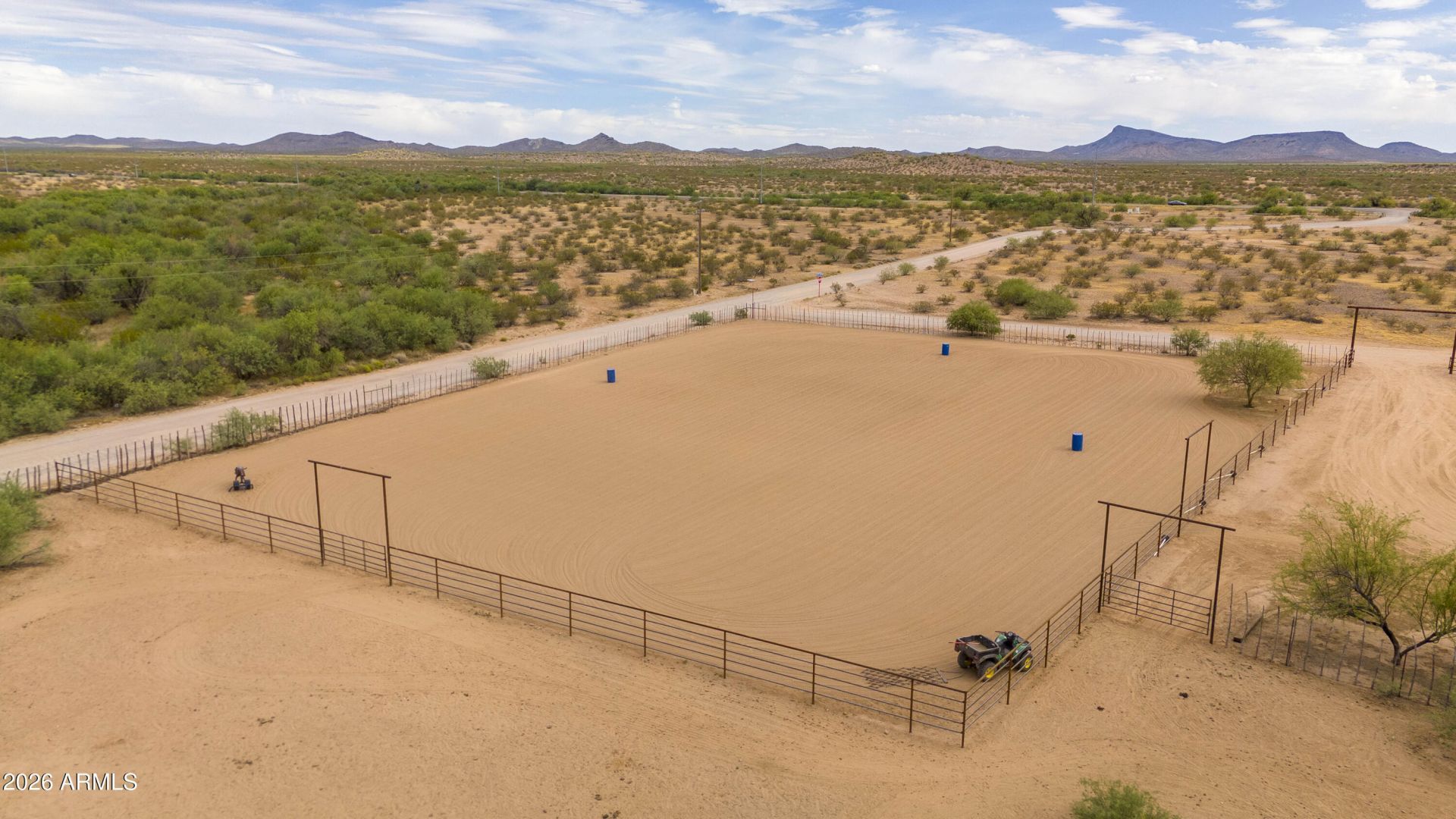 Everyone says they want a horse property and this one is done right! This 2 bed, 2 bath home has an attached 1 bed, 1 bath casita and sits on 5 acres. Fully furnished, it boasts a large garage which can easily fit a dually or 3 horse bumper pull trailer, two RV Spots and a 147 x 222 arena with specialty footing brought in. Six 16 x 16 covered pens are available but there is still plenty of acreage for expansion if you need a barn, more pens, big turnouts or want to expand the arena. There is also a 12 by 30 fully enclosed barn with a large overhead door and a walk-through door, expansive hay storage, tack area and loft, situated next to the mare motel. Two gated entrances for easy turn-around and ample trailer parking. The Connex box is ideal for storage, a tack room or workshop. This property is turn key and ready to go with plenty of room to make it yours. If youve ever dreamed of waking up, saddling your horses and roping in your own arena, this is what it actually looks like in Wickenburg.