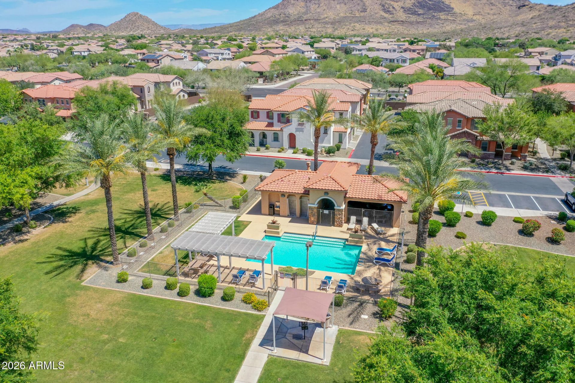 Gated community of Inspiration at Stetson Valley near TSMC, Sandra Day OConnor High School, and the Norterra, Peoria Trailhead & 4 Corners shopping and dining districts. This 3 bed, 2.5 bath home offers a functional layout with laminate flooring, open great room, and kitchen featuring granite counters, stainless steel appliances, and ample cabinetry. Private paver patio just off the dining area--easy, low-maintenance outdoor space. Downstairs half bath. Upstairs features a spacious primary suite with walk-in closet, dual sinks, separate tub/shower, plus two additional bedrooms, full bath, linen storage, and upstairs laundry. Newer AC. Stetson Valley parks, dog park, sports fields, tennis/pickle ball and walking/biking trails.